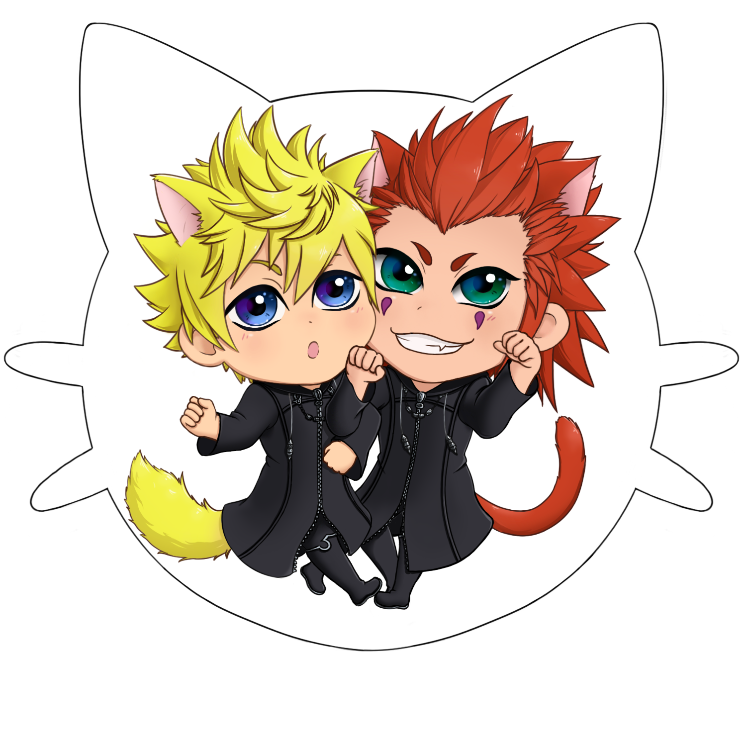 2.5 in Double Sided, Acrylic Charm with bell accessory. Kingdom Hearts, Axel and Roxas.