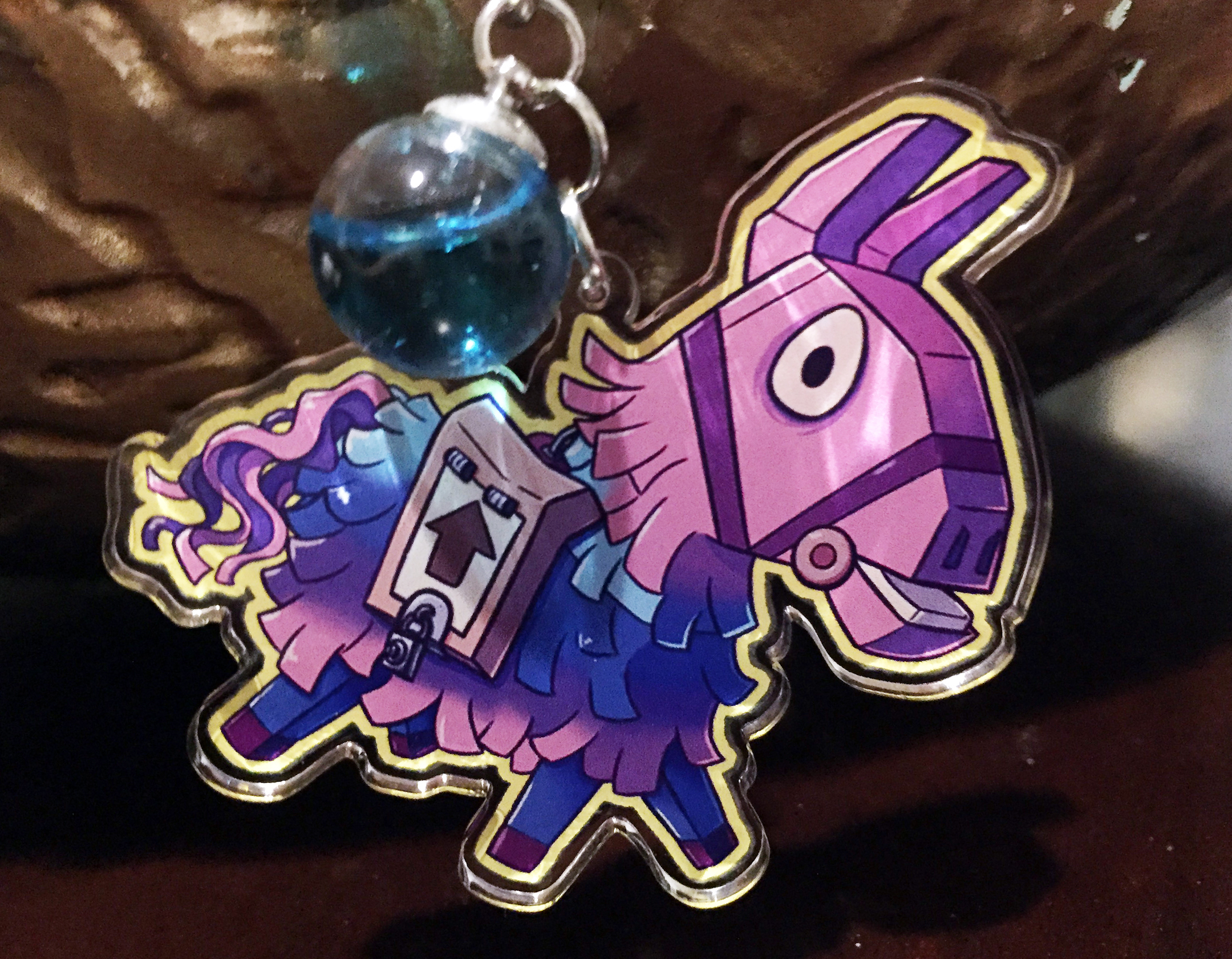 A 2.5 in double sided charm with slurp juice accessory so you can get that dubski. (The slurp juice accessory is sturdy but can break! It can easily be removed from the charm as well)