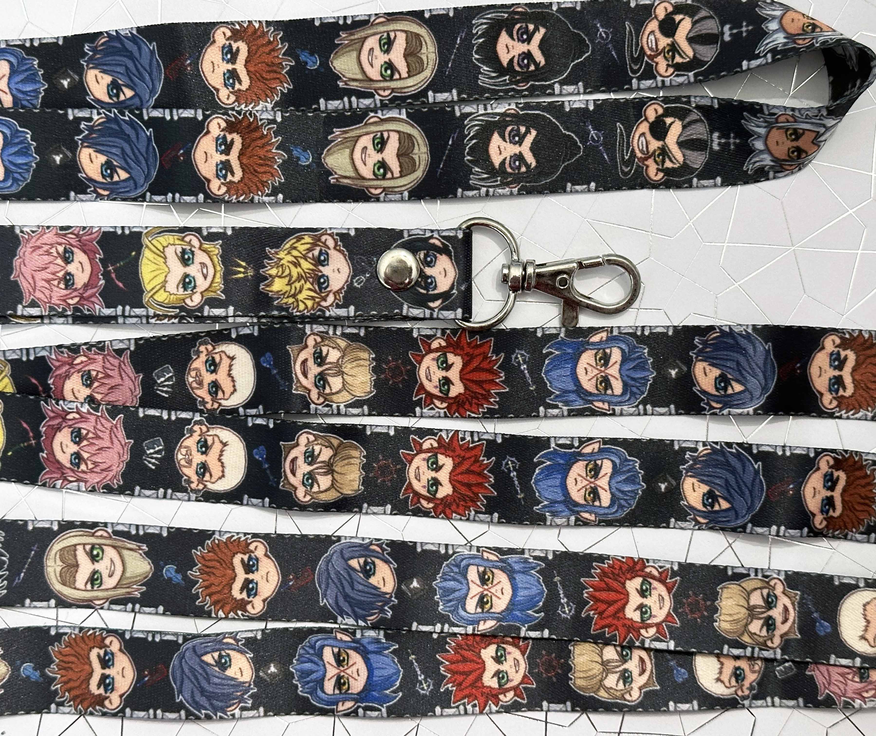 A lanyard depicting each member of organization 13 from kingdom hearts!